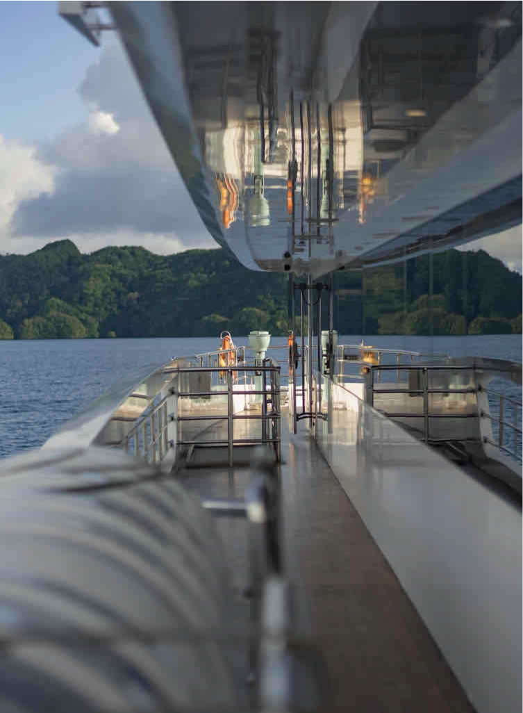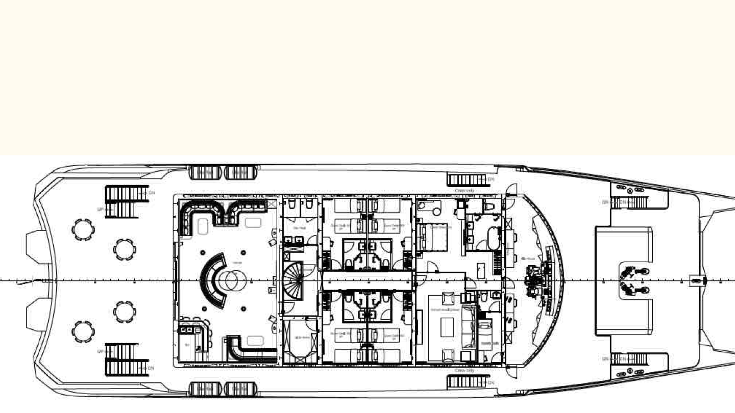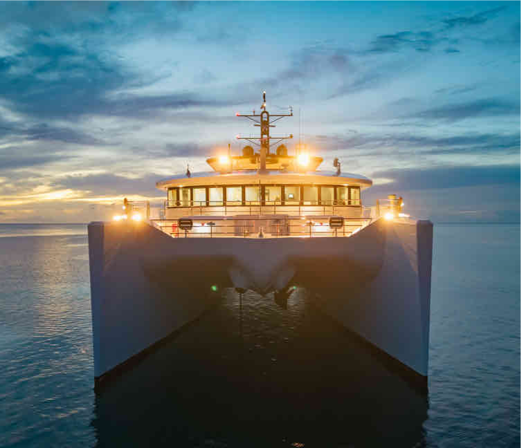 The Steel and aluminium catamaran 49 M is powered by twin MTU and backed by extensive fuel, water, and power redundancy. This long range catamaran is not only a yacht but she is a self-sufficient expedition platform built for elegance, performance and discovery.